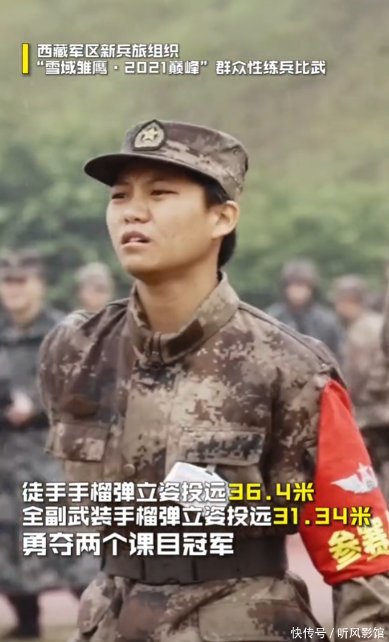 在“雪域雏鹰·2021巅峰”群众性练兵创破纪录活动竞赛中,她更是以徒手手榴弹立姿投远36.4米、全副武装手榴弹立姿投远31.34米的优异成绩,勇夺两个课目桂冠,打破了新兵旅女兵组的纪录。